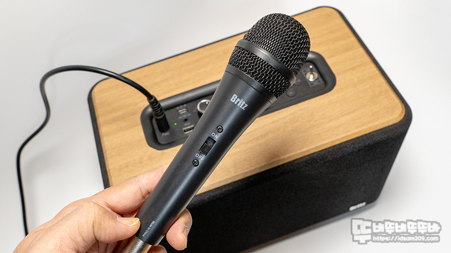 브리츠 BZ-CM500에 마이크를 연결한 모습.