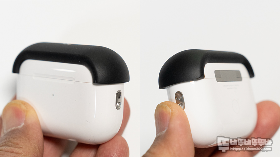 슬라이드 온 방식으로 큰 힘을 들이지 않고도 에어팟 프로 2 충전 케이스와 결합할 수 있었으며, 마치 처음부터 하나였던 것 같은 '물아일체'의 핏감이 예술입니다.