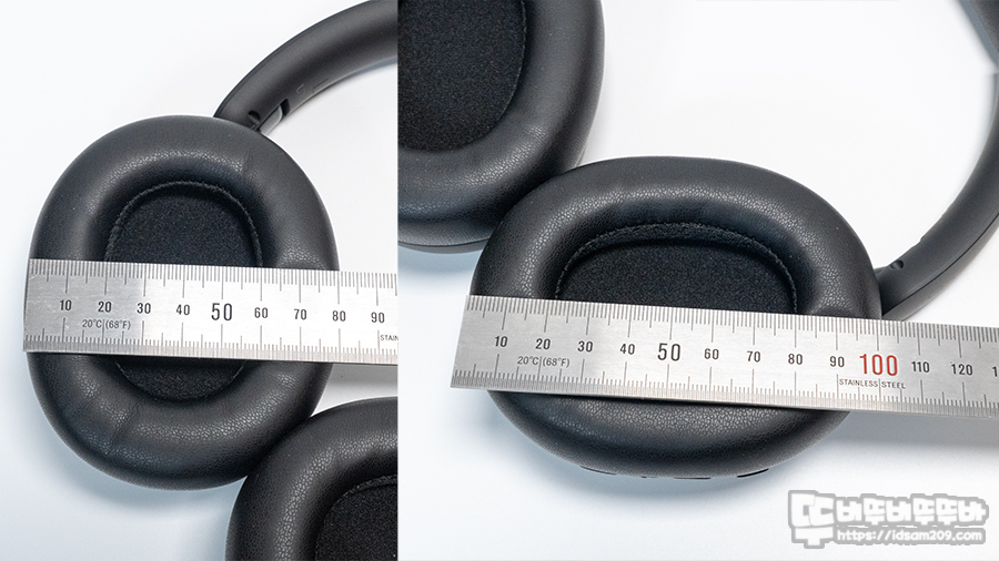 이어패드의 외경은 약 80x100mm, 내경은 40x60mm로 제작되어 넉넉한 오버이어 사이즈임을 확인할 수 있고요.