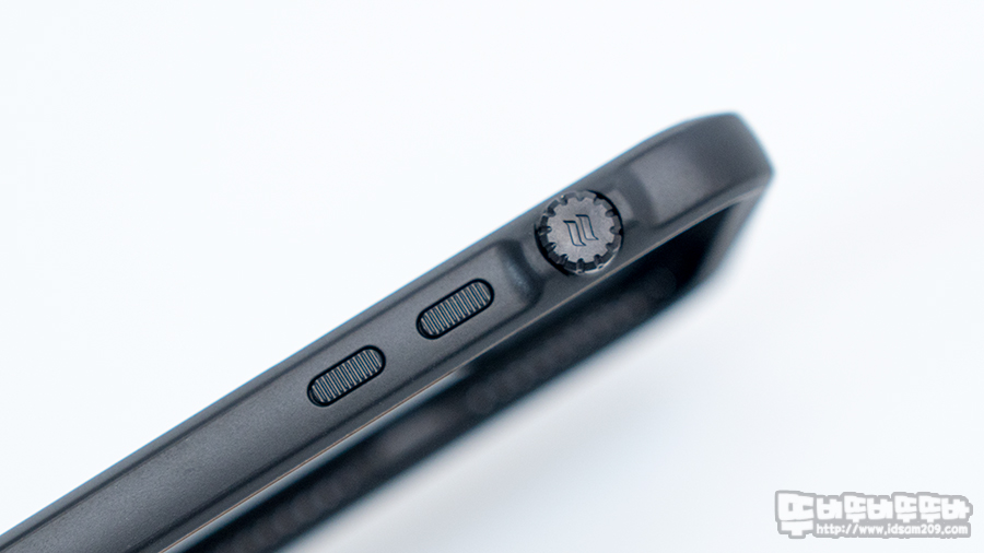 사이드 버튼은 임팩트 케이스보다 더 부드러운 느낌입니다.