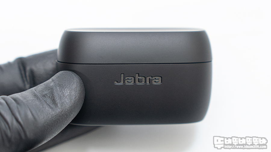 자브라 엘리트 75t의 충전케이스 전면에는 블랙 컬러 하우징에 음각으로 각인된 Jabra 로고 확인할 수 있고요.
