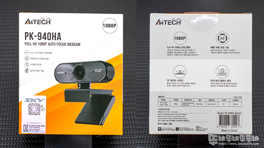 스카이디지털 A4TECH PK-940HA 웹캠 패키지 모습입니다.
