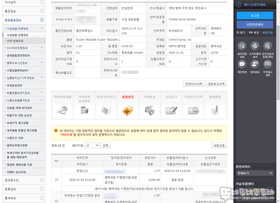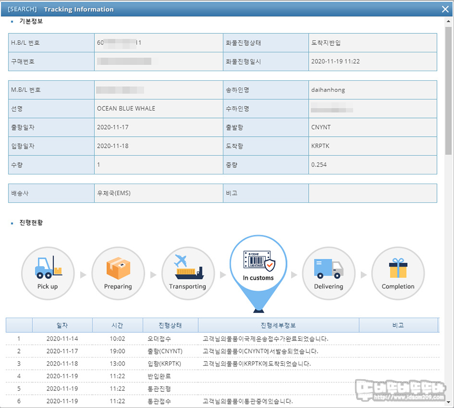 다음은 통관 중일 때 진행 사항을 확인하는 방법입니다.