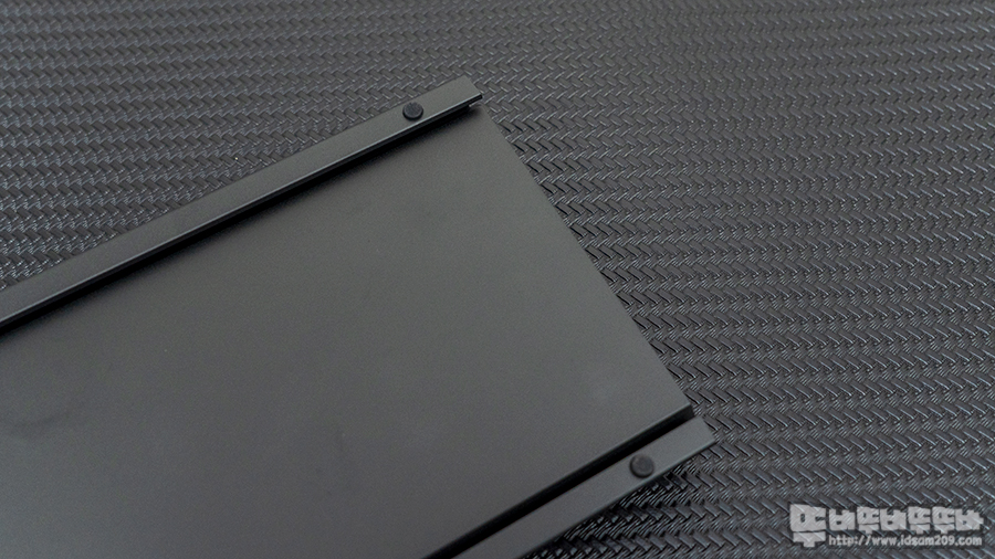 절곡 형태의 키보드 바닥 면 날개라고 표현할 수 있는 끝부분에 미끄럼 방지 패드가 부착되어있으며 이전 리뷰에서 소개해드린 전용 높이 조절 고무 받침대를 구입하시면 키보드 위쪽 부분이 약 10mm 높이의 경사각을 만들어 주기에 스탭스컬쳐2 각도를 타이핑이 편안하게 만들어 줍니다.