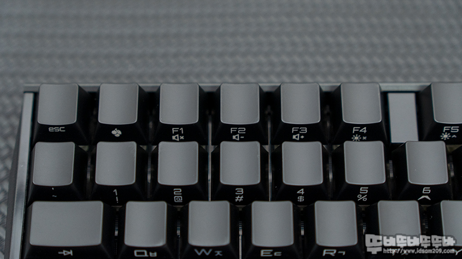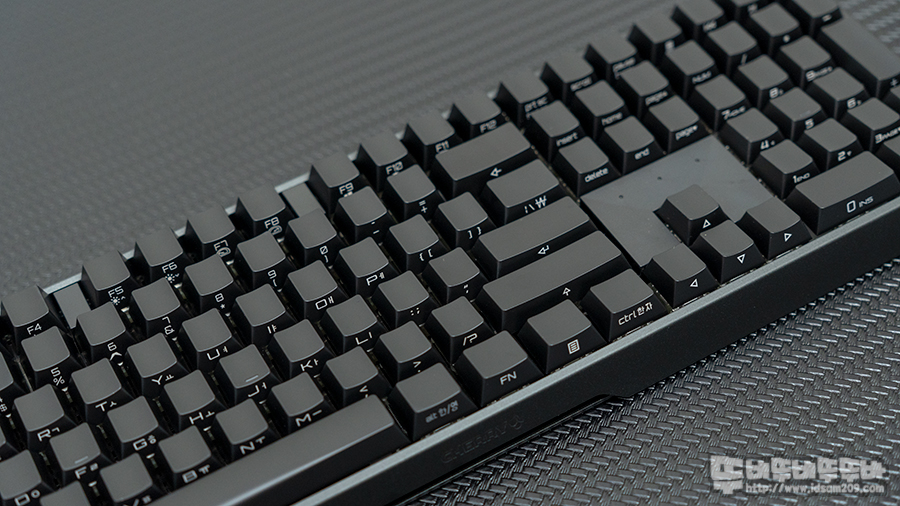 정각 각인의 키캡을 사용하는 화이트 컬러 제품과 다르게 블랙 컬러 제품은 키캡의 측각 각인을 사용하고 있으니 구입에 참고하시고요.