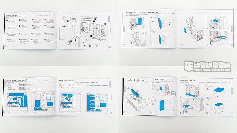 레고 매뉴얼 수준으로 쉽게 이해할 수 있는 Fractal Design Meshify 2 매뉴얼 모습입니다.