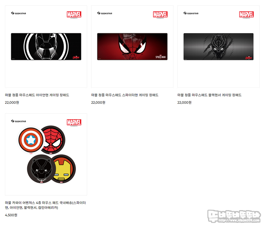 하지만, 매일 보는 마우스 패드에 의미 없는 이상한 로고, 기하학적인 무늬와 패턴 등 네 의지와 상관없는 이미지를 보는 것보다 친숙한 마블 캐릭터가 들어간 제품을 사용하시는 것도 괜찮아 보입니다.