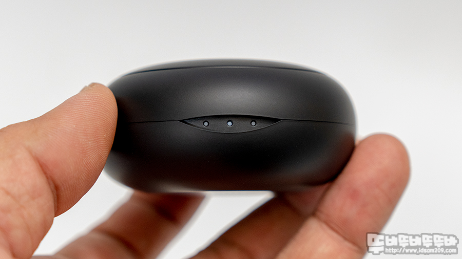 충전 케이스 완충까지는 약 2시간 소요되며 충전 케이스의 LED 인디케이터는 ●○○ 30%, ●●○ 65%, ●●● 100%으로 표현으로 배터리 잔량 확인이 가능하며