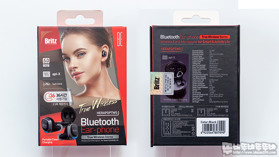 브리츠 HERAPOPTWS 완전 무선 블루투스 이어폰 패키지를 모습입니다.