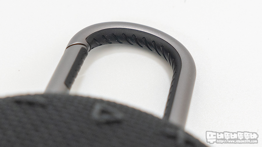 프레임 일체형으로 디자인된 카리비너 클립의 경우 금속으로만 되어있을 때 발생할 수 있는 미끄러짐을 방지하는 디자인이 적용되어있어 독특함을 느낄 수 있었습니다.