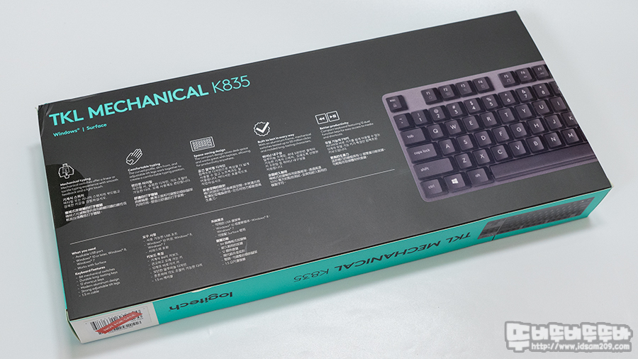 로지텍 K835 TKL 키보드는 이중 패키지 구조로 가장 겉면에 사용된 컬러 패키지에는 제품에 대한 다양한 정보를 표현하고 있는데요.