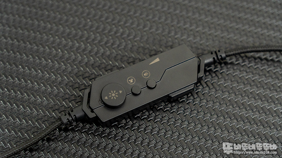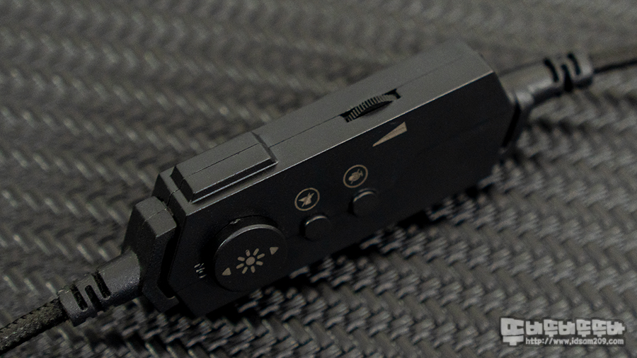 기능만큼이나 심플한 컨트롤러는 LED On/Off / Mute On/Off / 마이크 On/Off 그리고 측면에 볼륨 조절 다이얼로 구성되어있어 헤드셋 사용 시 간편하게 조작이 가능합니다.