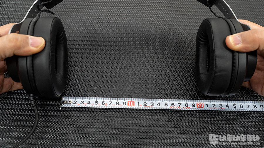 이어패드는 가로*세로 두께의 20mm 쿠션이 타원형 모양을 이루며 위/아래 폭 약 104mm, 좌/우 폭 약 84mm으로 쿠션감 있는 오버이어로 디자인되었습니다.