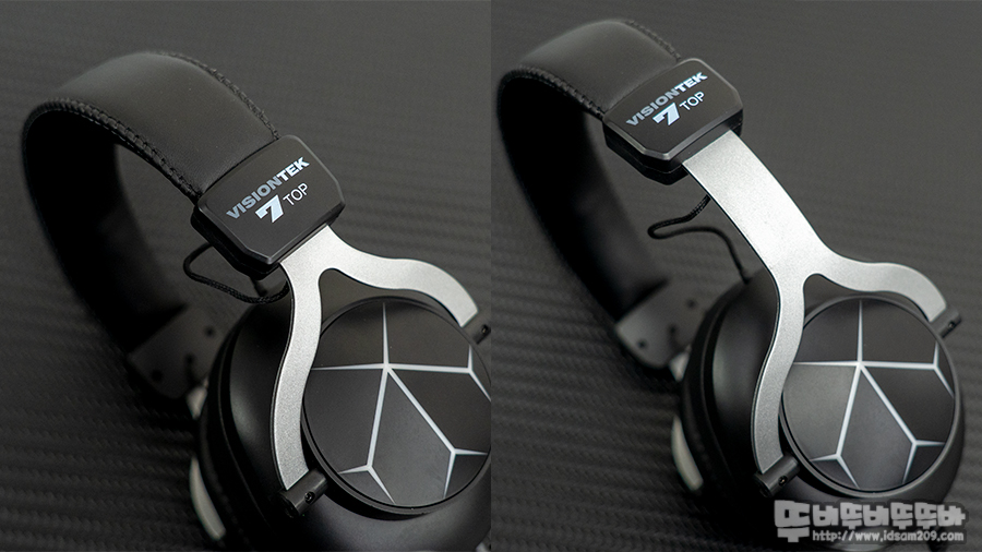 비전텍 7TOP 가상 7.1 채널 게이밍 헤드셋 측면을 살펴보면 이어컵 하우징에는 RGB LED가 표현되는 디퓨저 형태의 무늬 그리고 알루미늄 소재가 사용된 포크 모습을 확인할 수 있는데요.