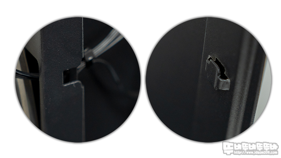 거기에 벨크로 타이가 기본으로 부착되어있어 파워 서플라이 케이블과 I/O 포트 케이블 등을 한 번에 정리할 수 있어 시스템 조립 시 더 깔끔한 느낌을 주며 샤시 후면의 깊이가 선정리에 충분한 약 22mm 두께를 제공하고 있습니다.