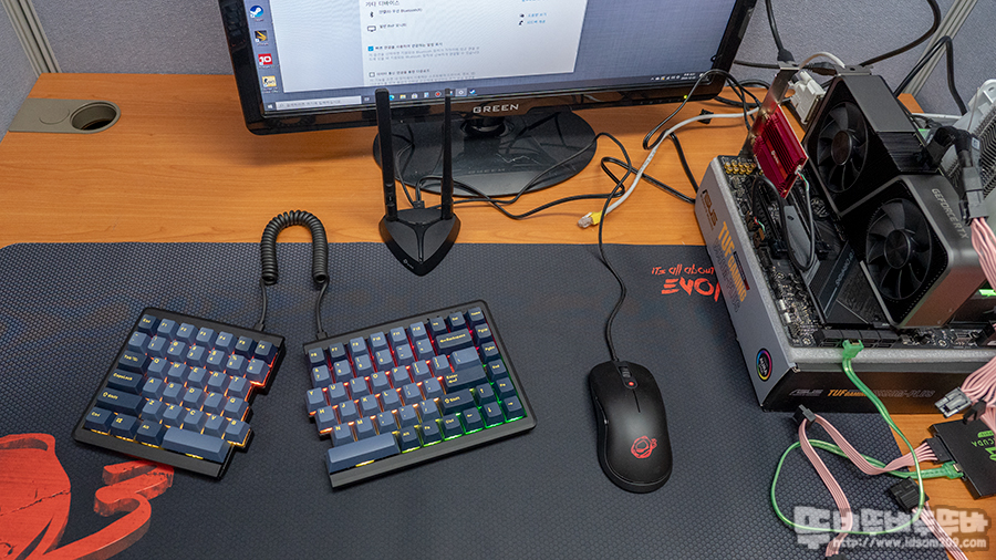 사진상 시스템에 사용된 ASUS TUF B550-PLUS Wi-Fi 메인보드의 경우 내장된 Wi-Fi 칩셋과 충돌이 발생하여 부득이하게 시스템을 해체하고 ASUS ROG STRIX X570-F GAMING 메인보드로 변경 후 오픈 테스트로 진행하였으니 참고하여주시기 바랍니다.