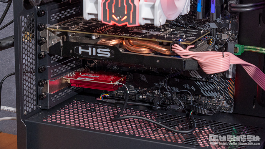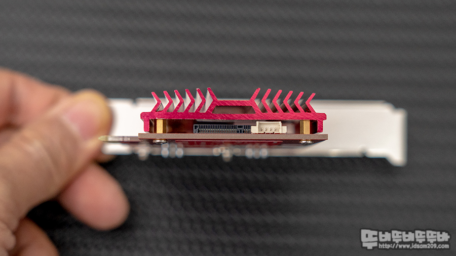 히트싱크는 기판 컬러와 동일한 레드 컬러를 사용한 게 특징이네요.