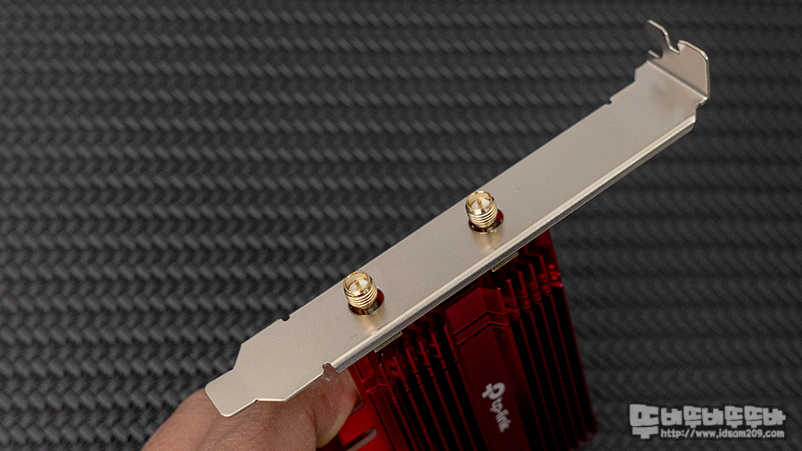 레드 컬러 기판에 레드컬러 알루미늄 히트싱크가 사용되었으며 브라켓 부분에는 2개의 안테나 연결단자는 LP 브라켓 교체 시 동일한 위치를 유지합니다.
