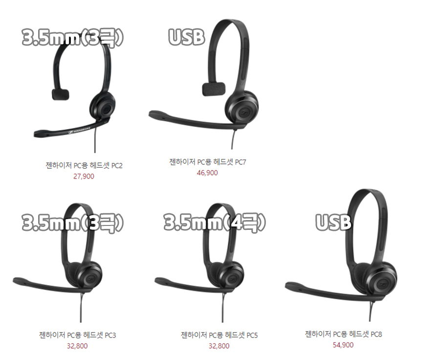 PC 시리즈는 모노 타입의 PC2 / 7 그리고 스테레오 타입의 PC3 / 5 / 8으로 3.5mm 3극 /4극, USB 타입으로 세분화된 게 특징이며 그중 제가 리뷰하는 PC8 헤드셋은 외장 사운드 카드가 내장되어 USB 연결만으로 플레그 인 플레이로 사용이 간편하면서 노이즈 캔슬링 마이크를 사용하여 음성 채팅에 특화된 제품인데요.