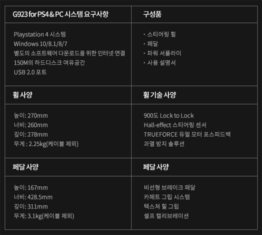 확실히 레이싱 게임에 특화된 전용 컨트롤러답게PS4 뿐만 아니라 PC 플랫폼의 다양한 레이싱 게임에서 활용이 가능하니 레이싱 매니아분들에게 로지텍 G923 트루포스 피드백 레이싱 휠을 강력하게 주천드립니다.