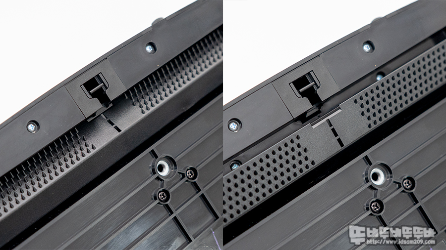 그 외에는 레이싱 휠 바닥면과 마찬가지로 레이싱 체어 구축 시 고정을 할 수 있는 나사 홀과 일반 가정집에서 사용 시 미끄럼 방지 패드 구성으로 되어있는 것을 확인할 수 있습니다.