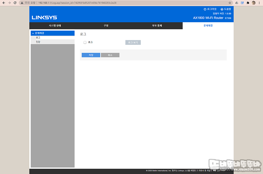 링크시스 E7350 관리자 메뉴는 시스템 상태 / 구성 / 부모 통제 / 문제 해결 등 총 4가지 메뉴로 구성되어있으며 각 메뉴에서 다양한 설정을 지원하고 있습니다.