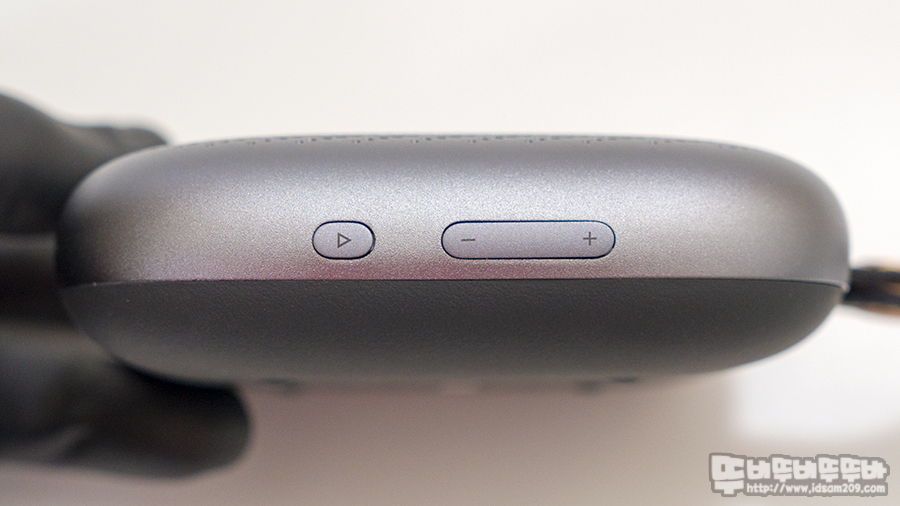 제품의 좌측면에 전원 스위치와 블루투스 페어링 버튼, 하단면에 USB-C 충전단자와 AUX 단자, 우측면에 멀티펑션 버튼과 볼륨 조절과 트랙 이동 버튼 등 기능 버튼과 충전 단자가 스피커를 U 형태로 돌아가며 구성되어있어 한 손으로 컨트롤하는데 불편이 있는 편입니다.