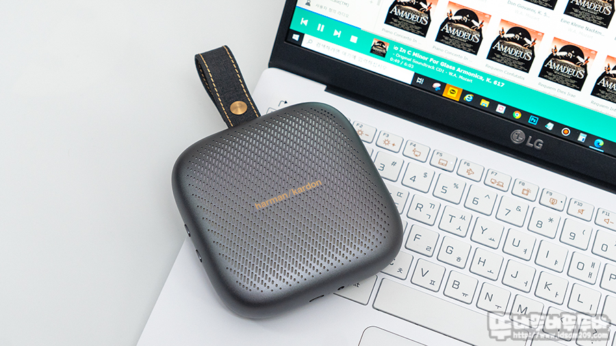 보통의 포터블 스피커는 베이스가 많이 부각되는 사운드를 들려주지만 하만카돈 Neo는 응답 주파수 130Hz – 20kHz 대역을 사용하여 베이스보다는 고음 쪽에 튜닝이 된 느낌의 사운드로 스피커 유닛이 최대 출력 시 (노트북 사운드 100%, 하만카돈 Neo 사운드 100%) 마치 스피커 내부의 패시브 라디에이터가 있는 거 같은 진동과 최대 볼륨임에도 찢어지거나 왜곡 없는 선명한 사운드를 들을 수 있었습니다.