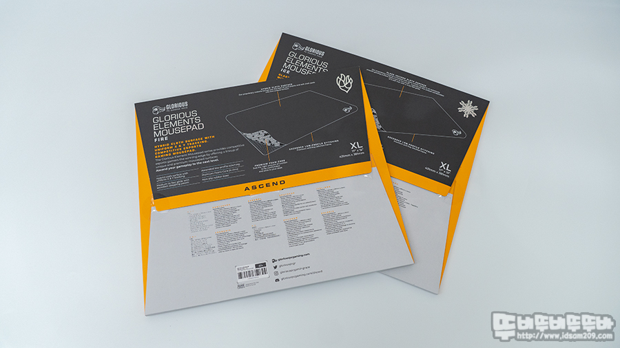 글로리어스 Elements ICE & FIRE 마우스패드 패키지 모습입니다.