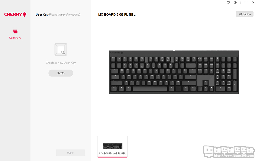 108 키 배열에 체리 키가 추가된 109 키 배열 디자인으로 레이저 각인이 사용된 ABS 키캡을 사용, 플라스틱 하우징 베이스의 풀 배열로 363g의 가벼운 무게, RGB LED를 미지원, 구매일 기준 2년간 서비스를 보증하는 제품으로 다나와 기준 79,000원에 판매되고 있습니다.