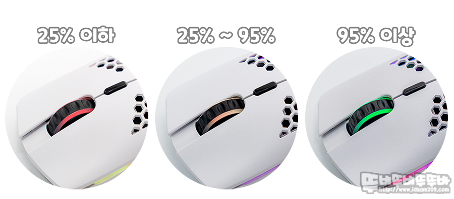 특히 Mouse Function - Battery status check 기능을 버튼에 부여하면 소프트웨어가 없더라도 사용 중에 버튼을 눌러 LED 인디케이터 표시로 잔량 확인이 가능한데요.