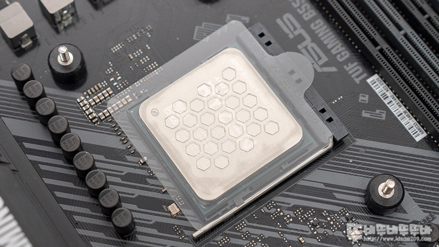 그리고 스텐실 필름을 살짝 올려 위치를 확인하고 접착면 보호 필름을 제거하고 CPU 표면에 부착합니다.
