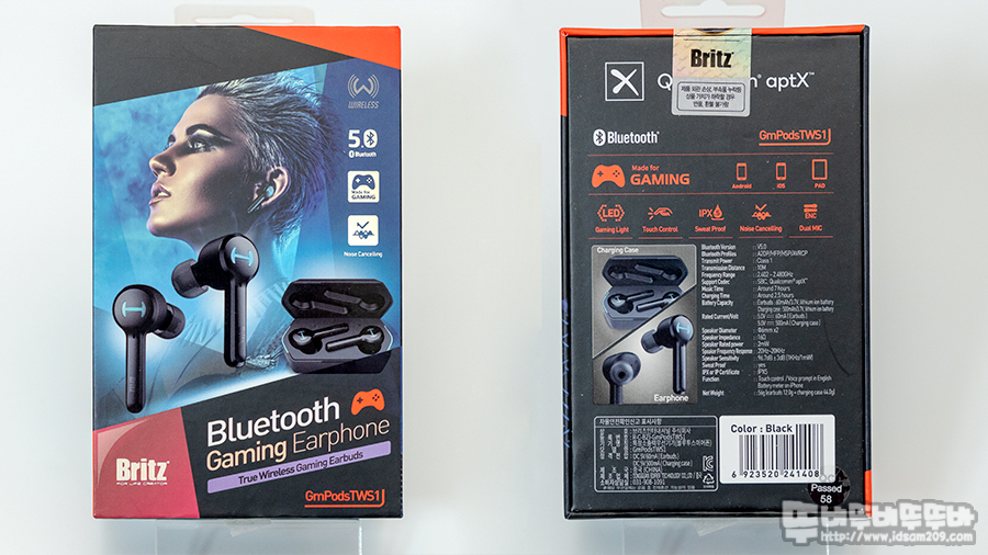 브리츠 GmPodsTWS1 게이밍 블루투스 이어폰 패키지 모습입니다.