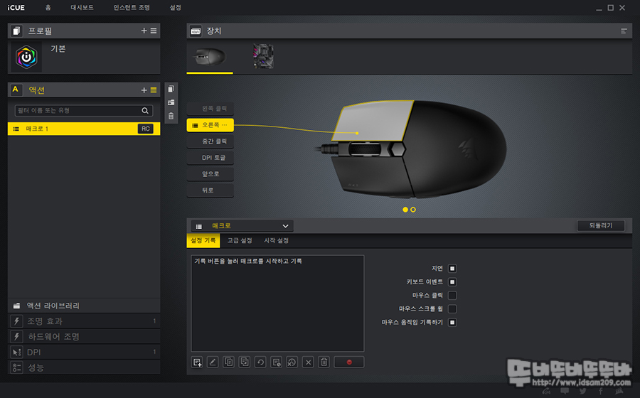 먼저 액션 메뉴에서는 버튼 기능 및 매크로 설정을 담당하게 됩니다.