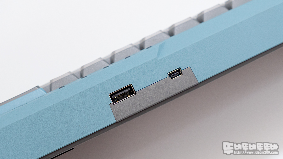자체 경사를 가지고 있는 디자인이지만 키보드 위쪽에는 멀티 페어링 스위치 내장으로 돌출되게 디자인되어 살짝 레트로 느낌을 주고 있습니다.