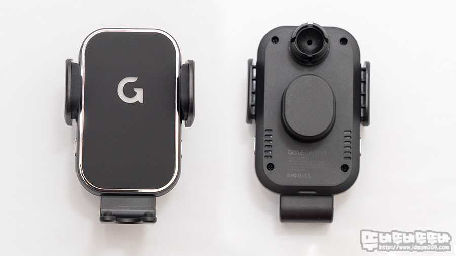 게이즈카 V3 차량용 20W 고속 무선충전 거치대는 충전 코일이 내장된 무선 충전을 지원하는 전면과 그립 날개가 작동하는 모터와 거치대 결합을 하는 베이스가 돌출된 후면의 모습을 확인할 수 있습니다.