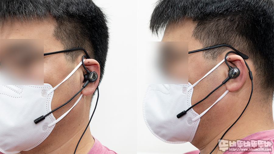 착용 전 디자인만 보았을 때 붐 마이크가 연결되는 왼쪽 하우징에 무게감으로 착용감이 불안하지 않을까? 했는데 실제로 착용을 해보니 생각보다 편안하고 안정적인 착용감을 주어서 깜짝 놀랐습니다.