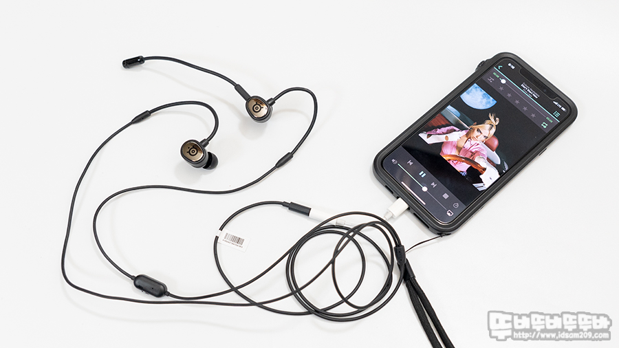 아이폰 11 Pro를 사용하기에 라이트닝 to 3.5mm 아답터를 이용하여 스틸시리즈 TUSQ(터스크) 게이밍 이어셋 연결한 모습.