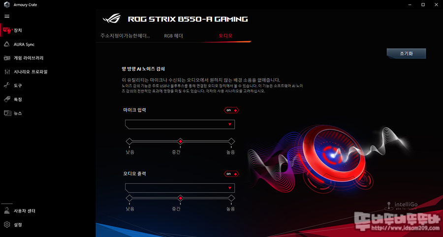 유틸리티 다운로드 후에는 오디오 메뉴에서 AI Noise-Canceling Microphone 기능을 사용할 수 있으니 참고하시기 바랍니다.