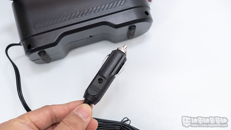 차량 시가잭 소켓에 전원을 연결하고 타이어 공기 주입구에 기본 차량 노즐을 연결하면 준비 끝.