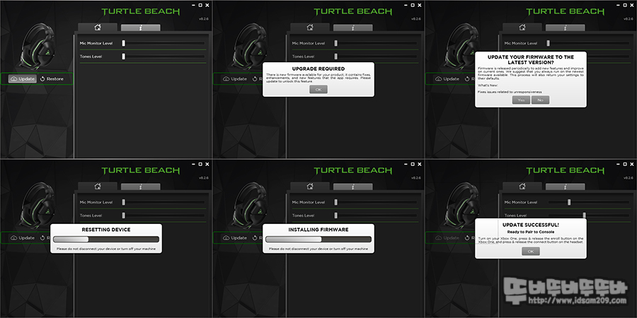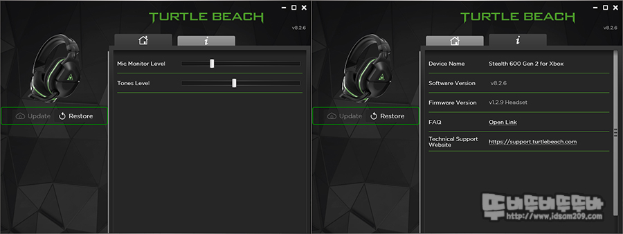 터틀비치 www.turtlebeach.com/pages/audio-hub 사이트를 통해 설치할 수 있는 Audio HUB 프로그램을 이용하면 제품의 펌웨어 정보와 간단한 설정이 가능한데요.