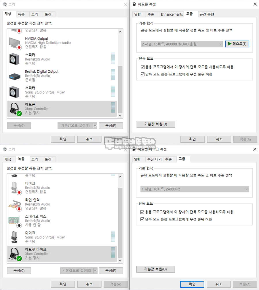 Xbox 무선 리시버 연결 시 컴퓨터에서 확인되는 정보를 살펴보았습니다.
