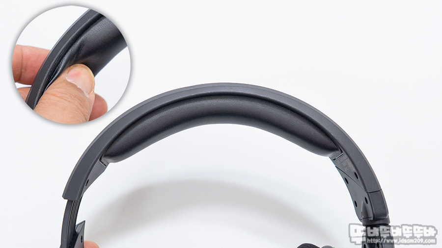 반원 느낌의 헤어밴드는 플라스틱 사출로 제작되어 고정된 디자인이며 밴드 안쪽에는 쿠션감이 좋은 패드를 사용하고 있어 정수리 부분에 눌림을 최소화해주고 있습니다.