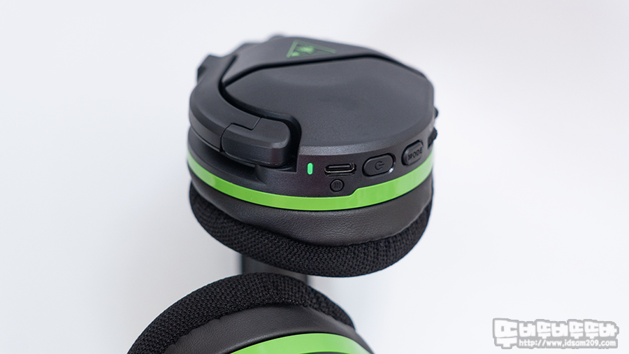 헤어밴드 상단에 터틀비치 로고 각인 모습.
