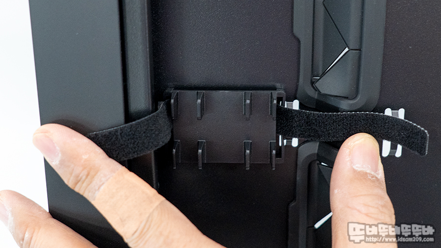 벨크로 타이만 있어도 생큐지만 이번 제품에서는 케이블 가이드를 제공하고 있어 I/O 포트 케이블, 파워서플라이 전원 케이블 등 케이스 내에 돌아다니는 다양한 케이블을 깔끔하게 정리할 수 있게 도움을 줍니다.