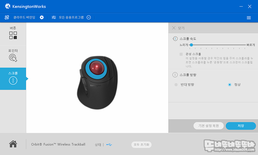 마지막으로 스크롤 기능은 스크롤 속도와 정방향 역방향으로 방향 선택을 지원합니다.
