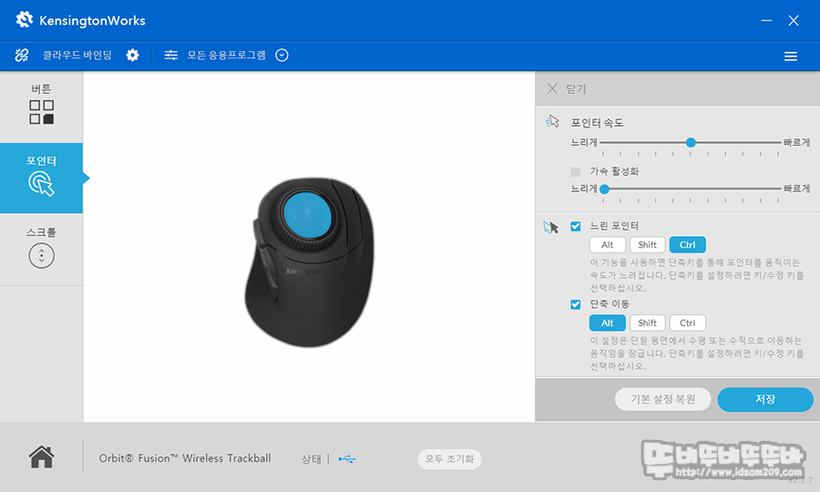 느린 포인터와 단축 이동은 지정된 Alt, Shift, Ctrl을 눌러야 작동되니 참고하시기 바랍니다.