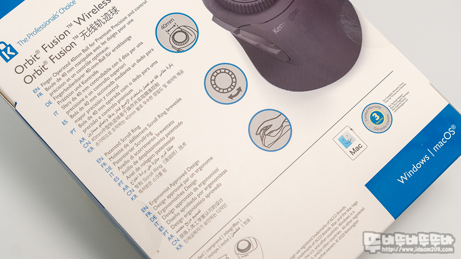 켄싱턴 오르빗 퓨전 무선 트랙볼 마우스 패키지 모습입니다.