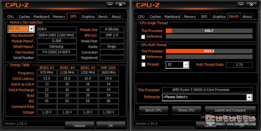CPU-Z 벤치에서는 싱글 쓰레드는 648.4점, 멀티 쓰레드는 5059.1점을 확인할 수 있습니다.