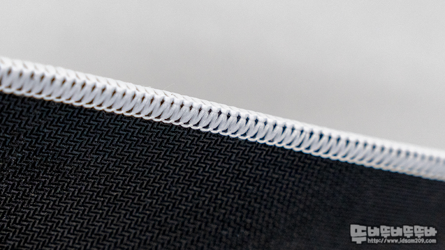 러버 베이스의 바닥면에는 빗살무늬가 적용되어있어 미끄럼을 방지하며 마우스 패드 엣지 부분에는 오버로크(스티치)처리가 되어 러버 베이스의 천 표면이 일어나는 현상을 사전에 방지해주고 있습니다.